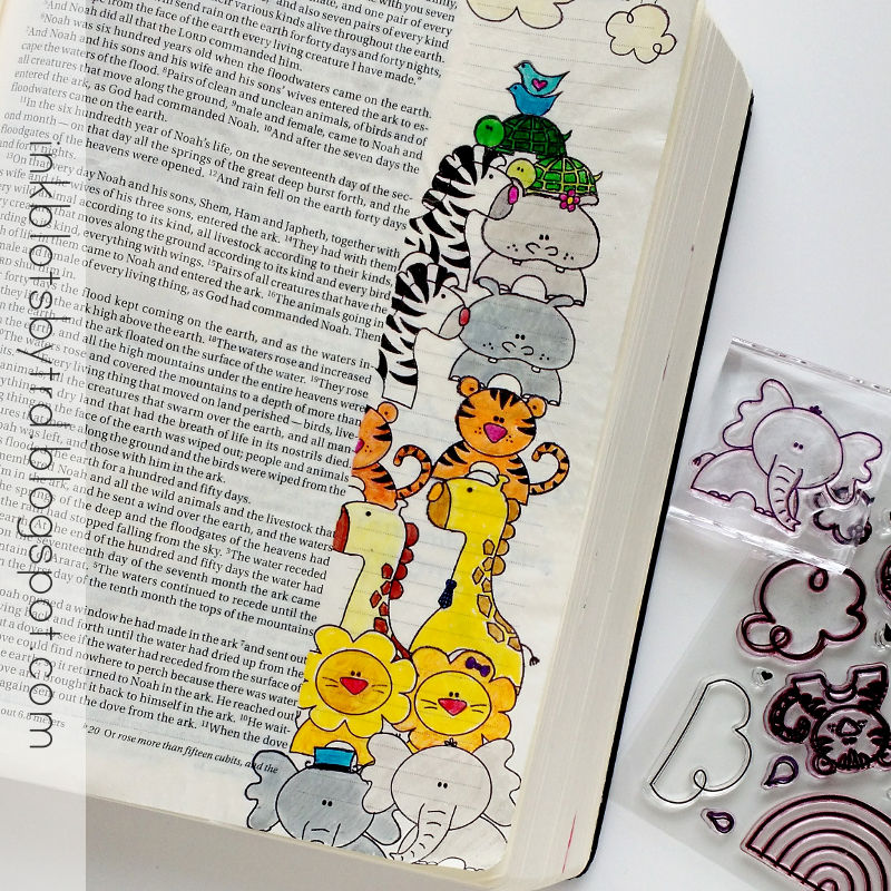 I used stamps from the Rainbow Promise set for this entry, and just finished it off with some simple coloring.