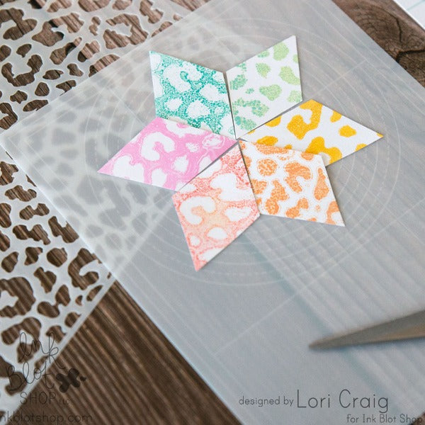 Note: actual stencil material is not colored, but is semi-opaque white. Lines are laser-engraved (so they won't rub off!) and will be most visible when placed over a dark surface.