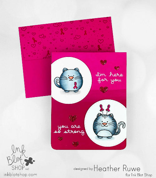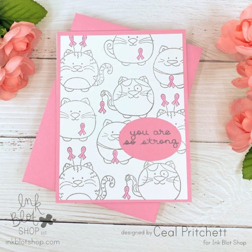 In honor of my amazing crafty friend, Tina Schrof, who is currently fighting breast cancer, a portion of sales of the Awareness Cats stamp set has been donated to Pink Ribbon Good.