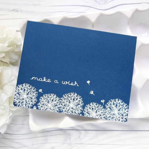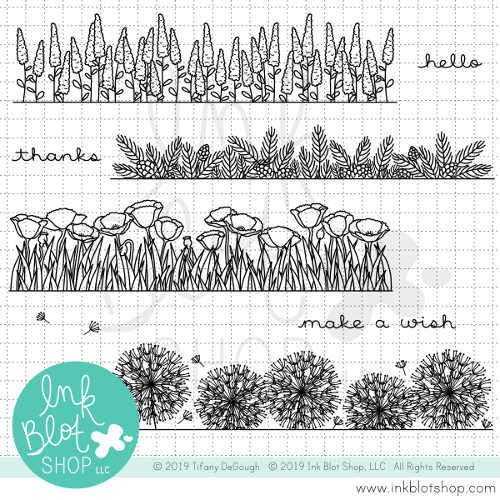 These easy borders are great for cards, bullet journaling, Bible journaling, and more. The Botanical Borders 2 stamp set includes the following words and images: poppies in grass floral border, lavender-style flower border, pine branch/bough border with pine cones, dandelion border, dandelion florets, "thanks", "hello", and "make a wish".