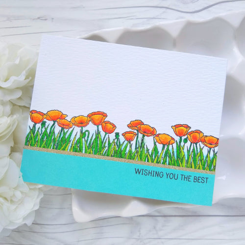 For size reference, the poppy border stamp is approximately 5 3/4" x 1 1/4".
