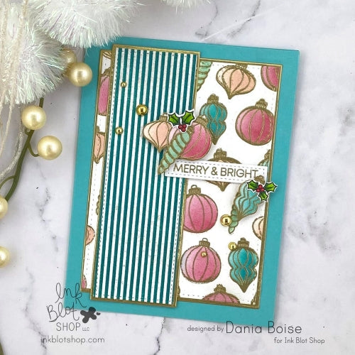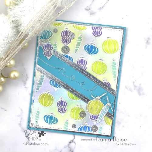 Christmas Ornaments Background is a 6" x 6" stamp set that includes 1 large background stamp. This festive background is great for creating holiday cards - and with the coordinating layering stencil set, it's quick and easy to create those cute Christmas cards in bulk!