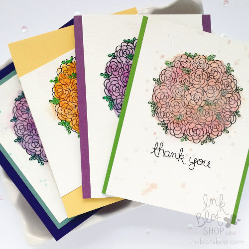 For size reference, the large floral bouquet is approximately 2 3/4" x 2 3/4", the floral spray is approximately 2 5/8" x 3/4", and the banner is approximately 3 1/8" x 1".