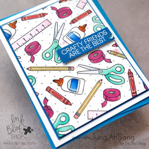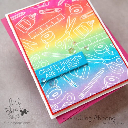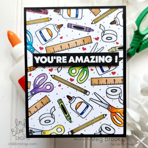 School Supplies Background is a 6" x 6" stamp set that includes 1 large background stamp. This background is great for creating cards for crafters, teachers, students, and more!