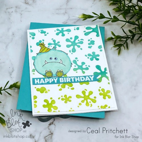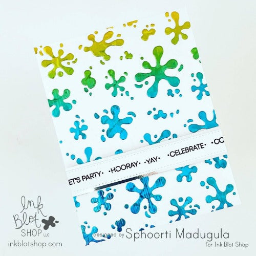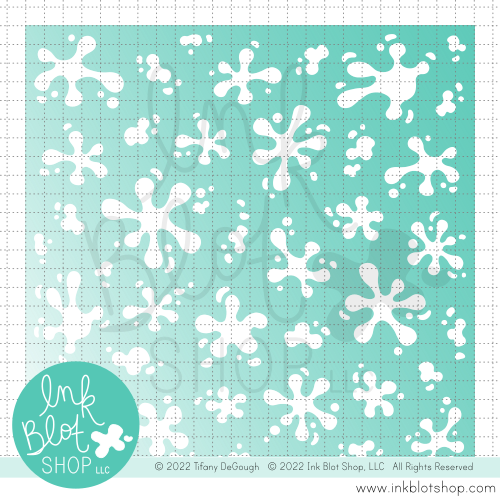 Splat All Over is a 6" x 6" stencil set that includes 1 stencil piece.